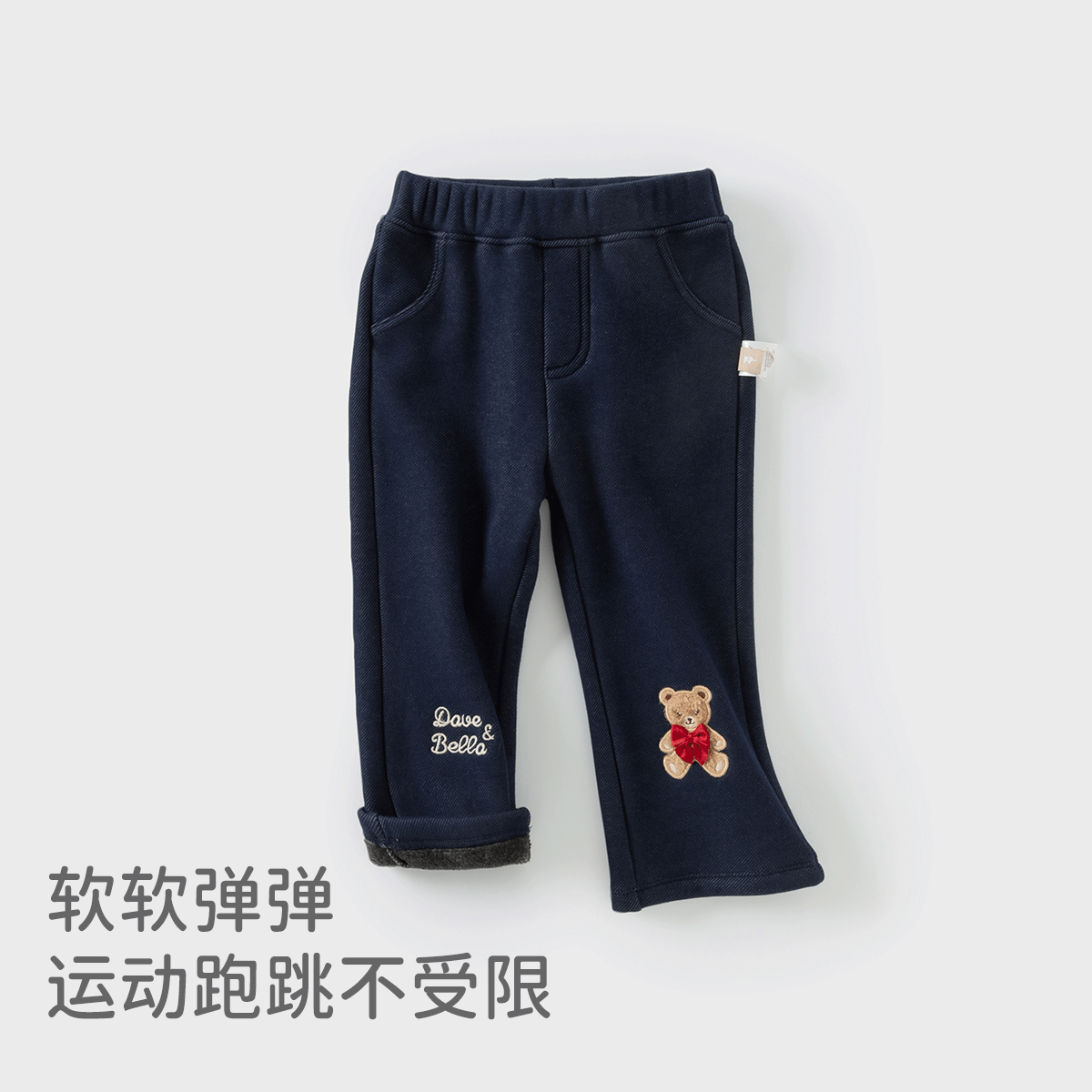 女童休闲加绒弹力微喇仿牛仔长裤 新款 子2025冬装 戴维贝拉儿童裤