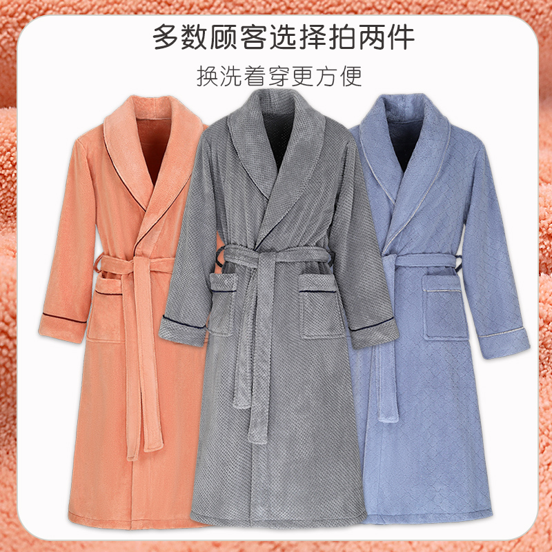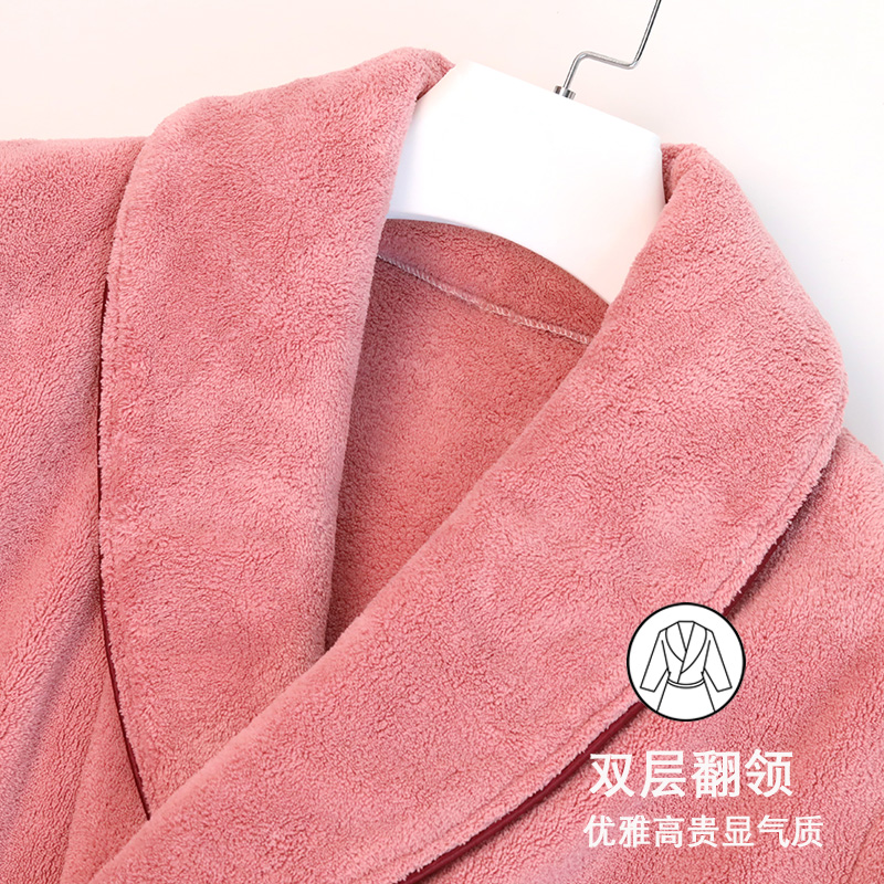浴衣 成人秋冬情侣款 女浴袍吸水速干珊瑚绒睡袍可穿可裹式 浴巾男士