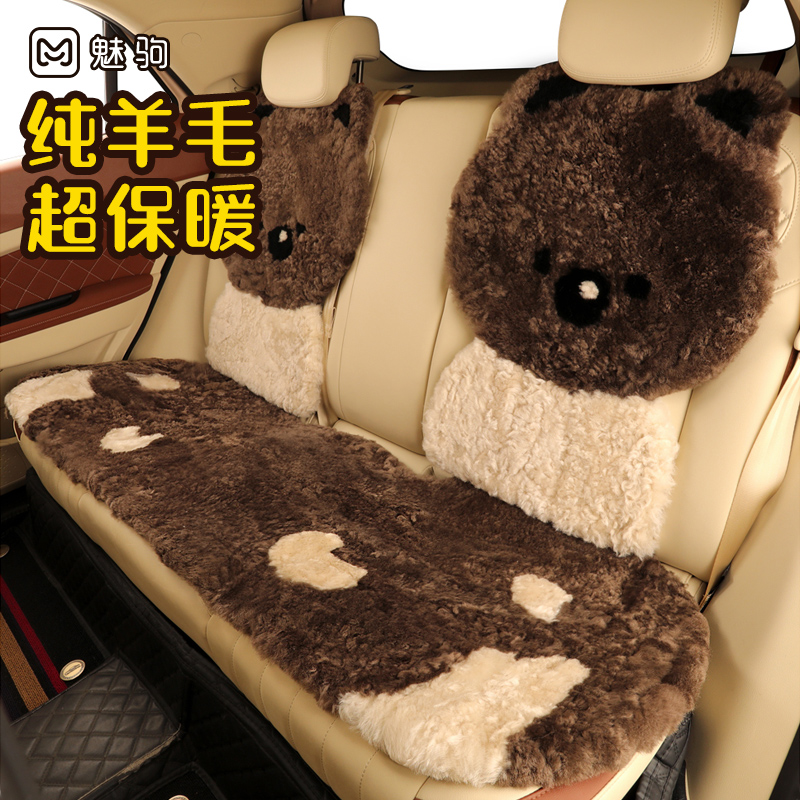 后排三件套车座垫 纯羊毛可爱女款 汽车坐垫冬季 毛绒座椅套卡通新款