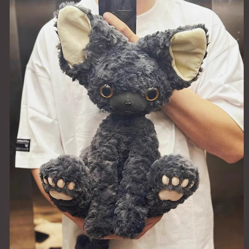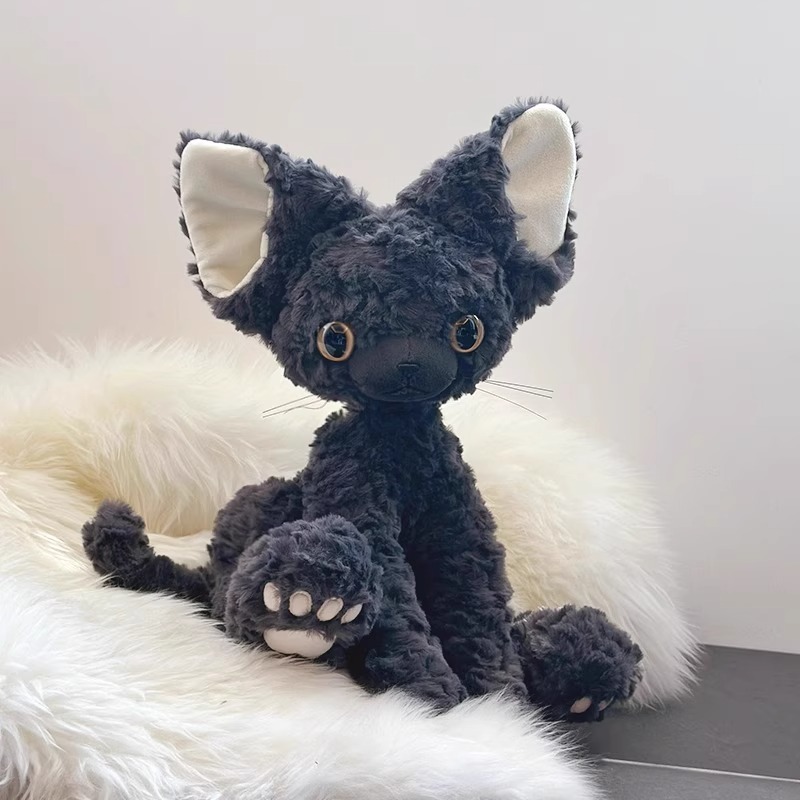 超萌黑猫猫咪德文卷毛猫同款 黑色玩偶公仔玩具送生日礼物女生礼遇