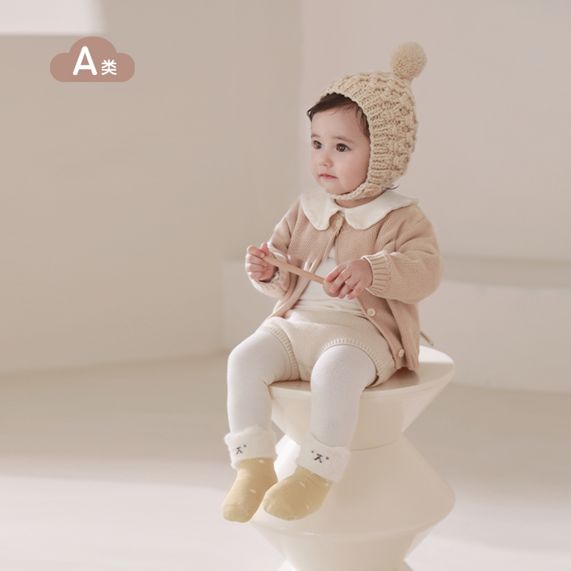 新生婴儿袜子秋冬季 加厚加绒保暖初生宝宝胎袜可爱超萌不勒腿中筒