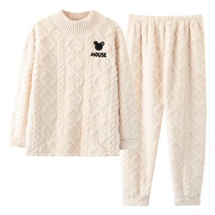 2024新款 套装 保暖半高领家居服可外穿 长袖 猫人珊瑚绒睡衣女秋冬季