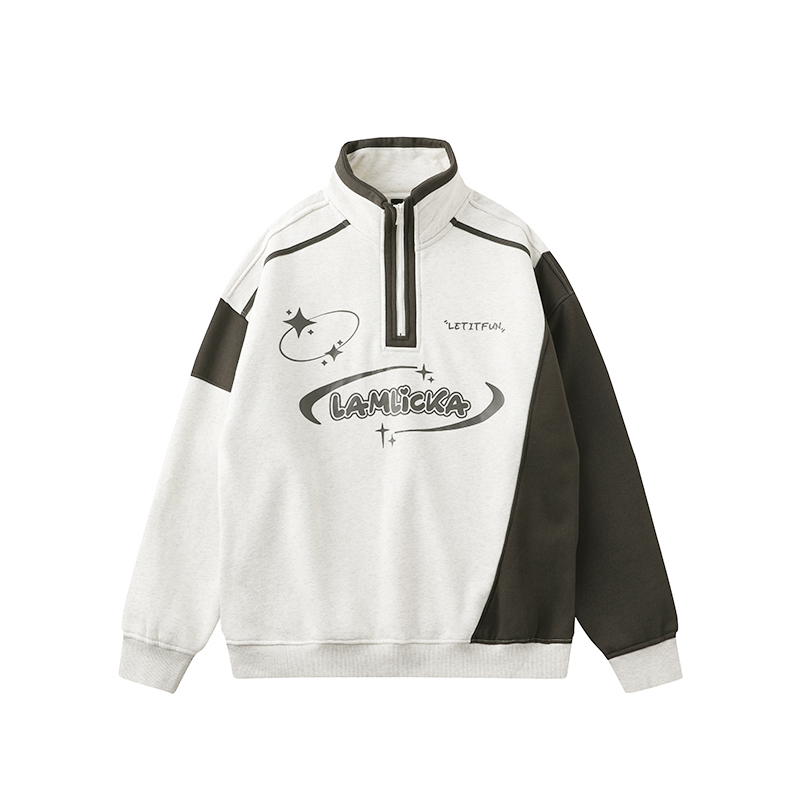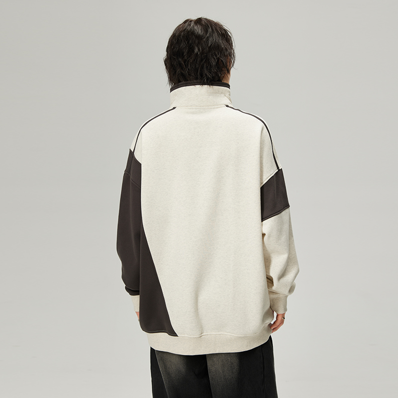 上衣宽松 重磅加绒情侣装 LAMLICKA半拉链美式 复古立领卫衣男秋冬季