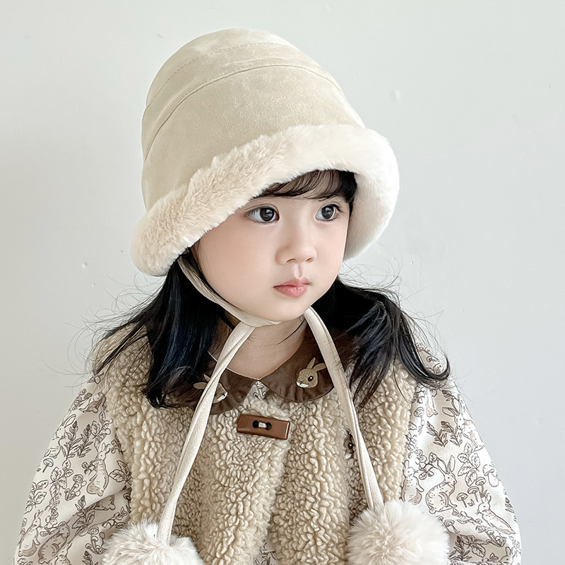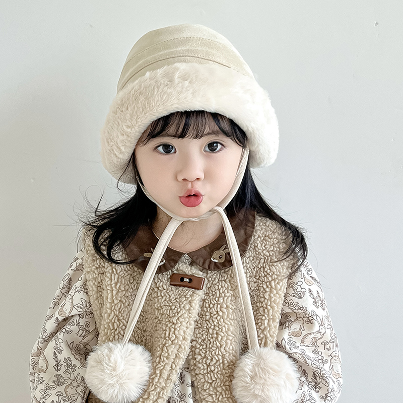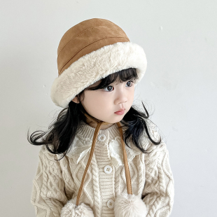 儿童帽子秋冬季 毛球护耳帽男女童加绒加厚宝宝冬天保暖渔夫帽 韩版