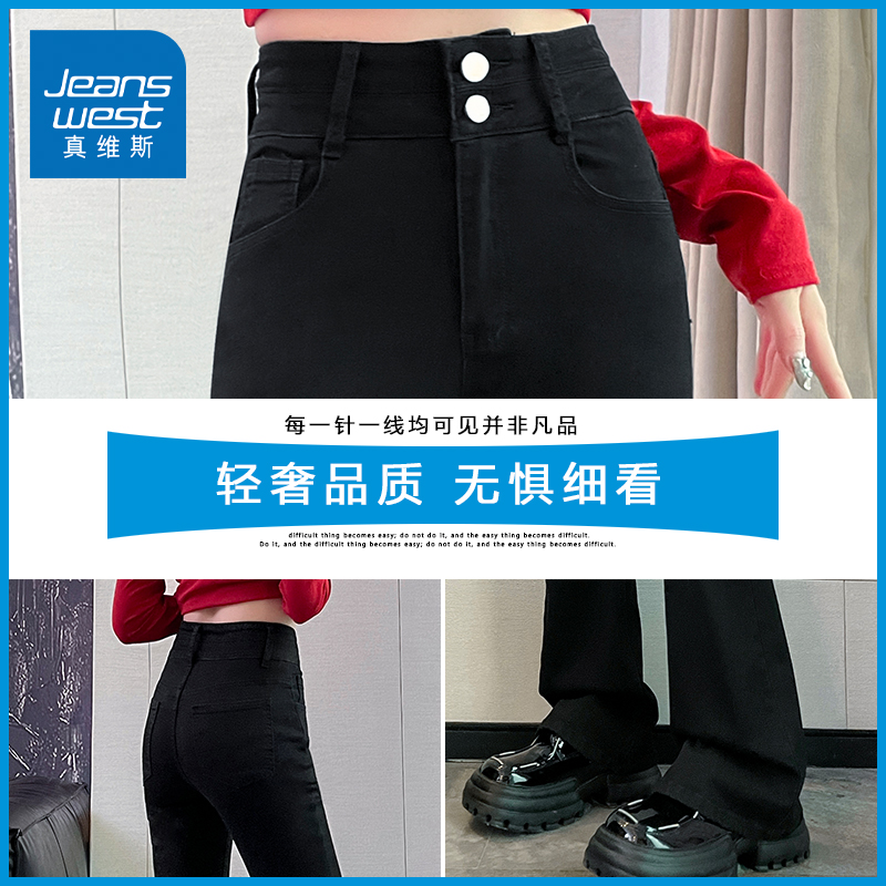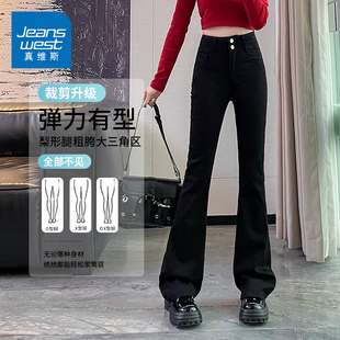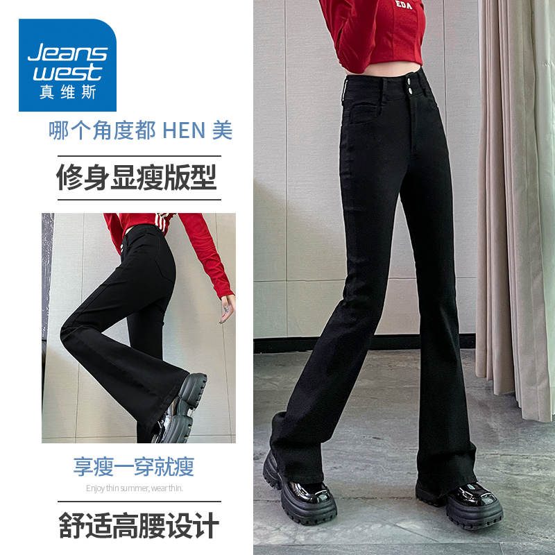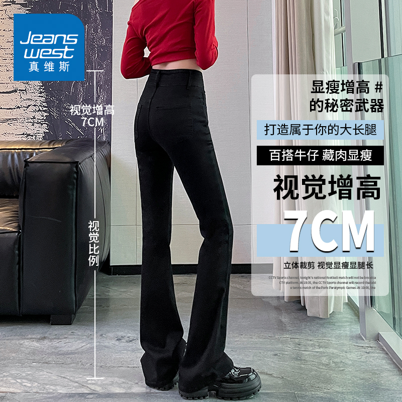 双扣马蹄长裤 KZH真维斯高腰牛仔裤 显瘦百搭微喇裤 修身 女春秋新款