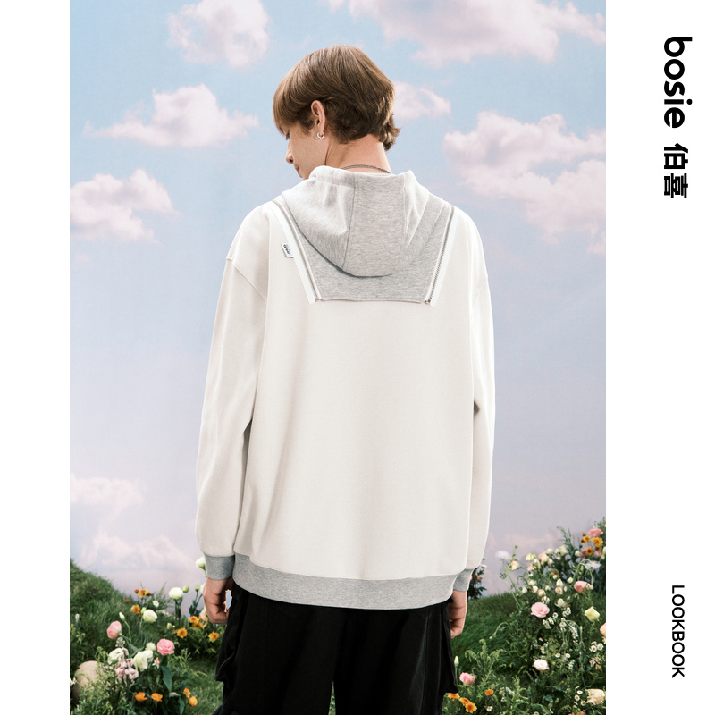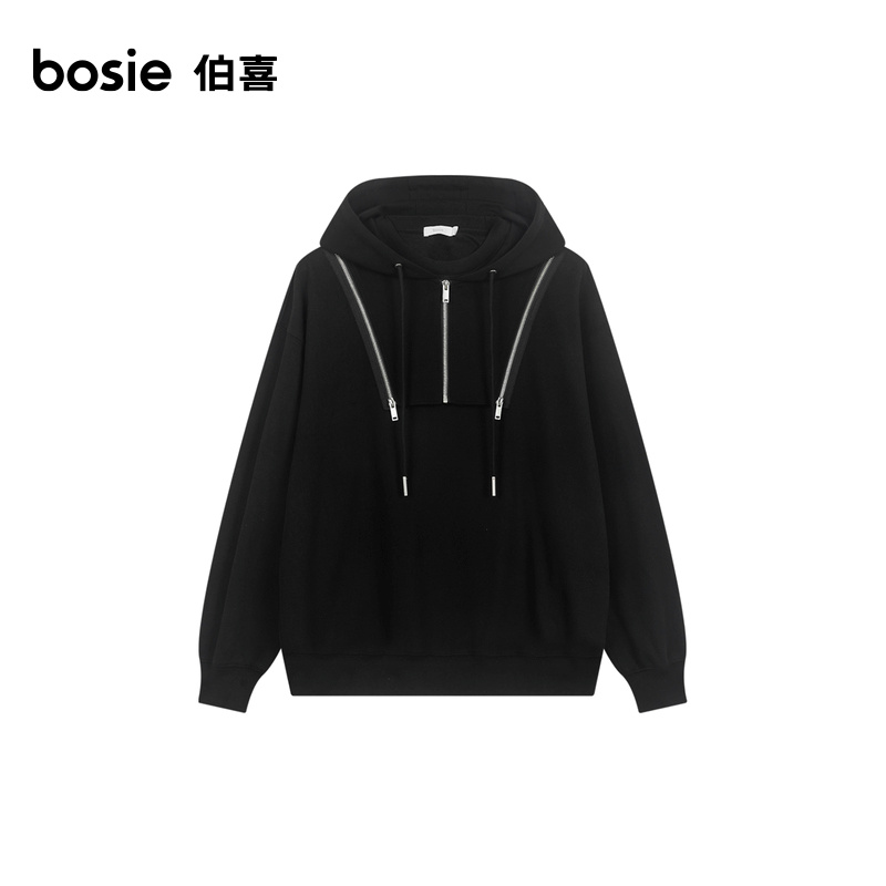 bosie2025年春季 肌理感卫衣连帽男情侣可拆卸帽子设计上衣潮 新款
