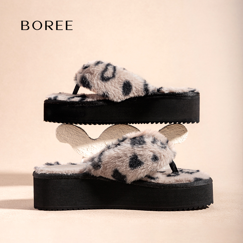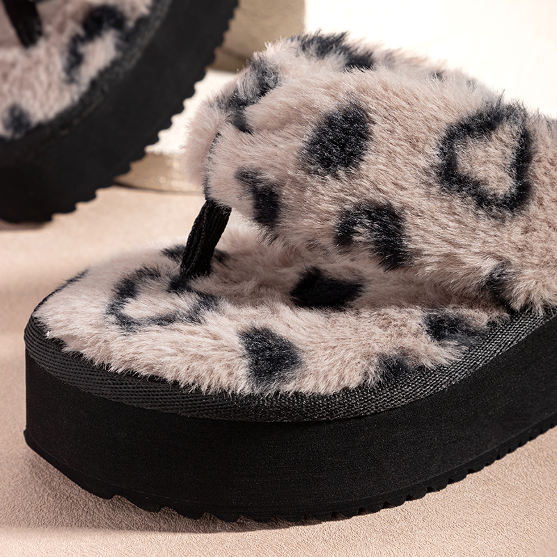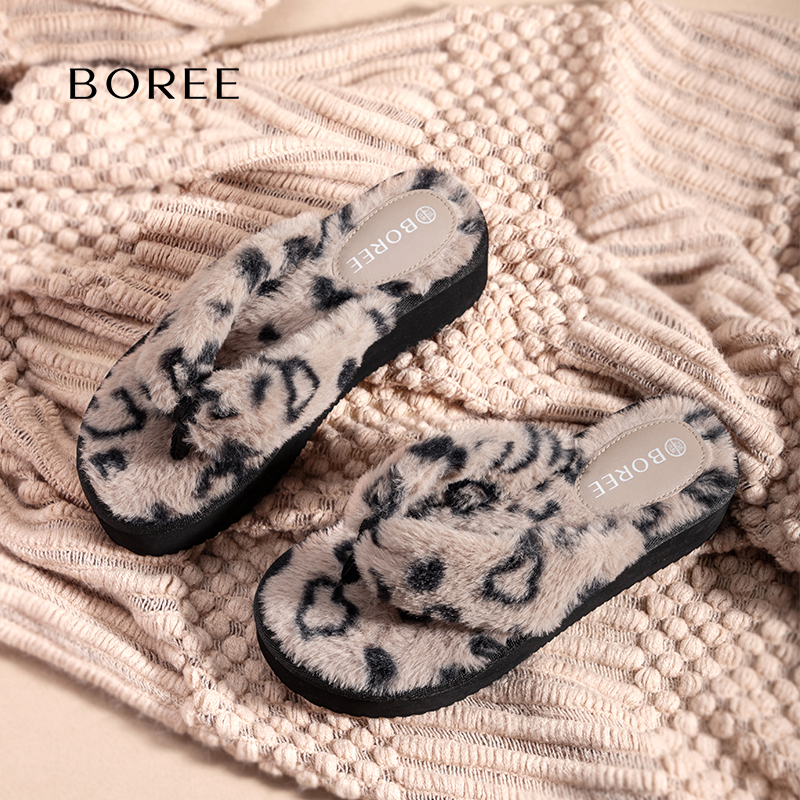 宝人毛毛拖鞋 秋冬松糕厚底增高居家棉拖 女外穿夹脚人字拖2024新款