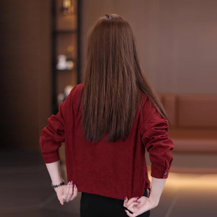 小个子休闲短款 长袖 红色外衣秋季 2025新款 上衣 夹克外套女春秋薄款