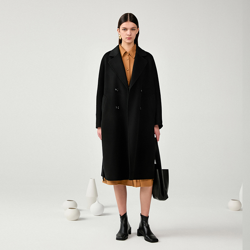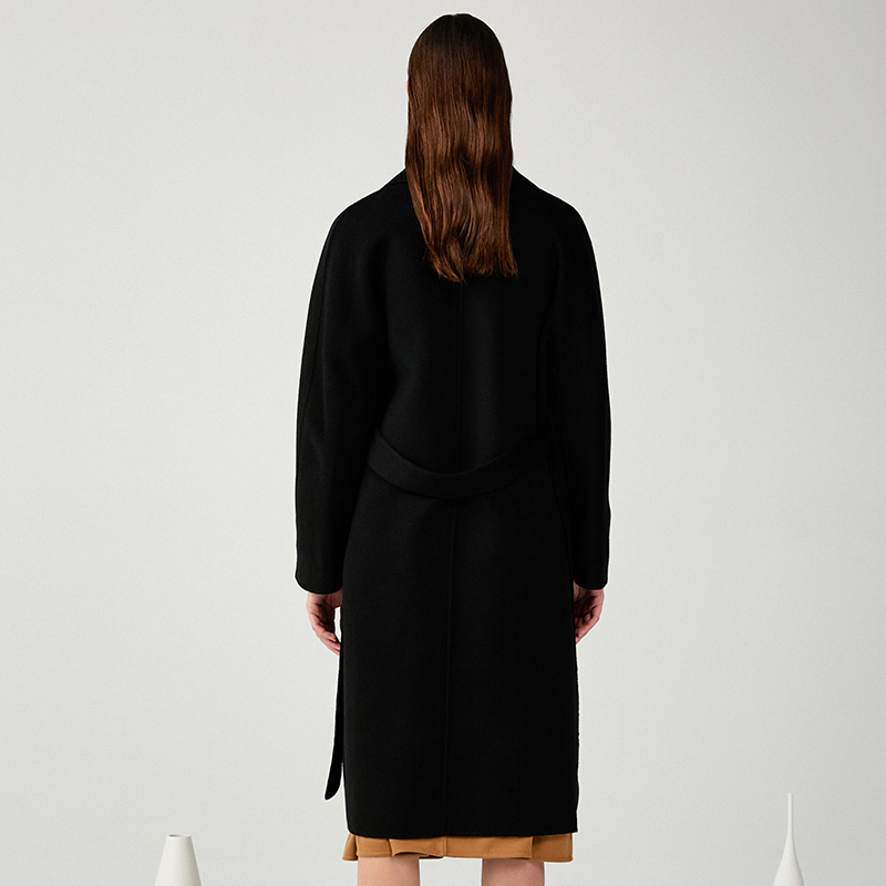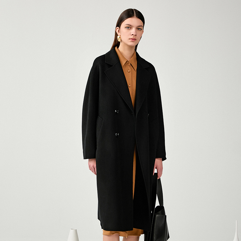 百搭简约黑色长大衣女气质毛呢风衣 新款 Maseley 玛塞莉年秋季