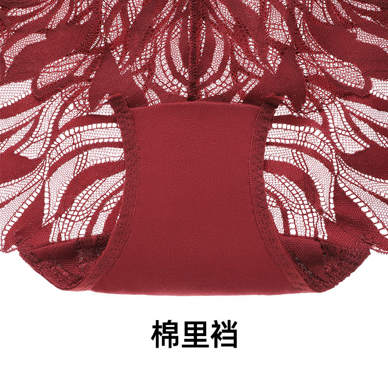 春夏速干纯棉裆无痕内裤 遐性感全蕾丝平角裤 女 艺术叶片