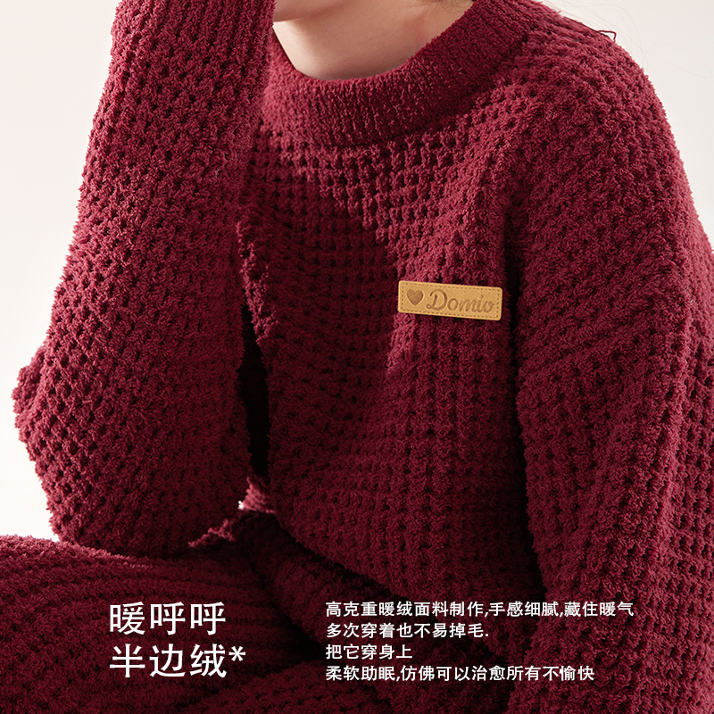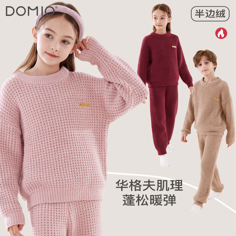 半边绒家居服男童中大童保暖加厚套装 女童睡衣儿童2024秋冬季 新款