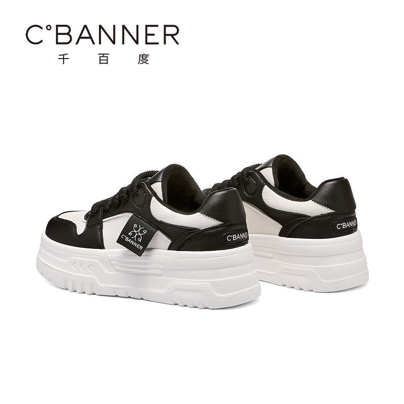 厚底板鞋 新款 加绒保暖百搭运动休闲棉鞋 小白鞋 千百度女鞋 女款 冬季