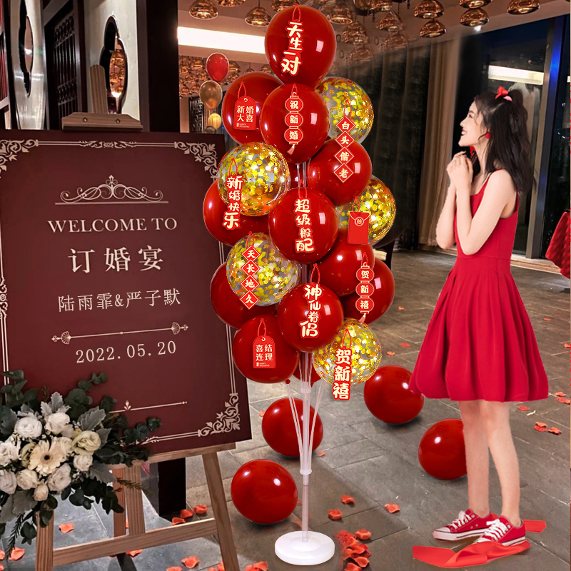 订婚装 饰地飘气球路引立柱支架落地气球结婚婚房布置农村女方发光
