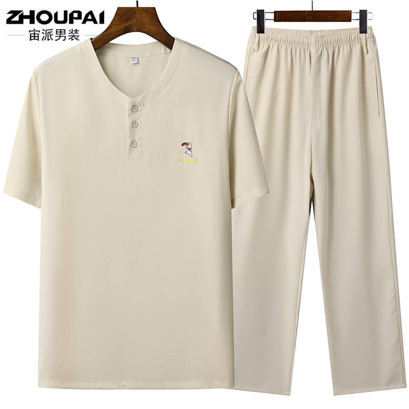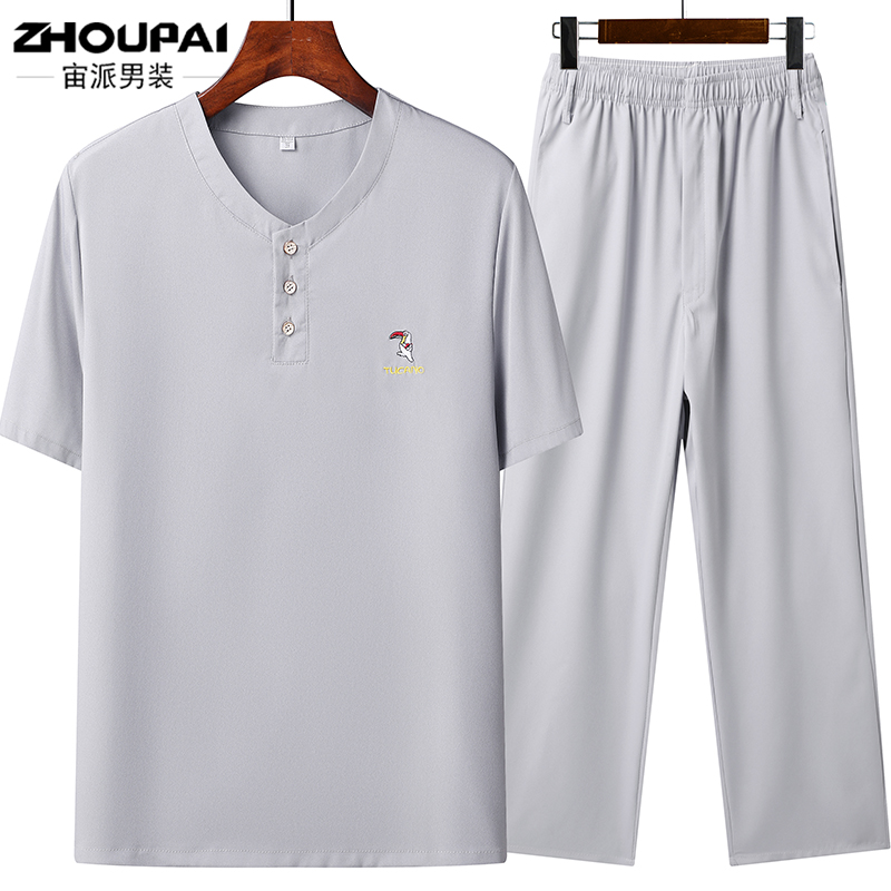 中年男士 秋装 裤 鹿竹爸爸秋季 t恤中老年人男装 新款 子长袖 衣服 套装