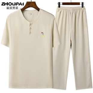 人造棉两件套薄款 家居服妈妈睡衣夏女短袖 2024新款 中老年棉绸套装