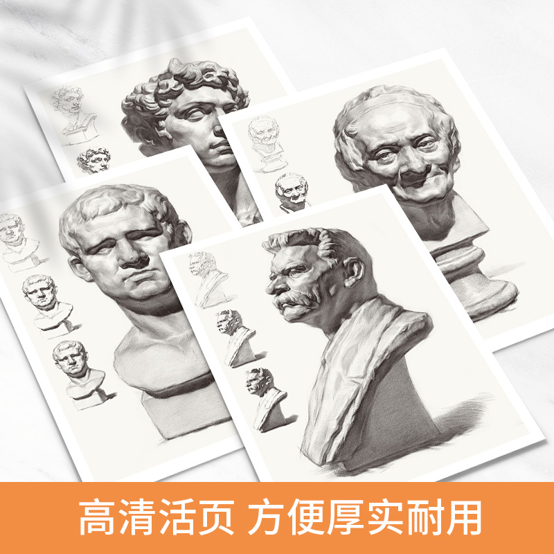 素描石膏像临摹卡8K 沐尚文化石膏画卡单体明暗结构国美初级照片画册本学基础入门学院教材教学美术绘画对照描摹练习 卡片高清创意
