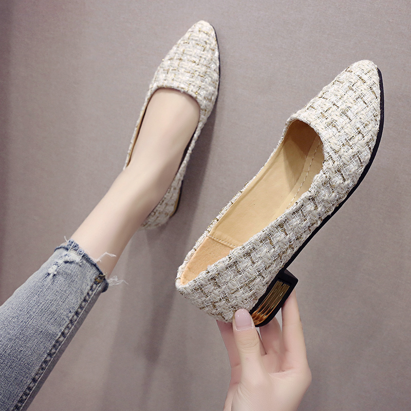 仙女风瓢鞋 秋季 浅口百搭中跟奶奶鞋 大码 真皮单鞋 女鞋 粗跟2025新款