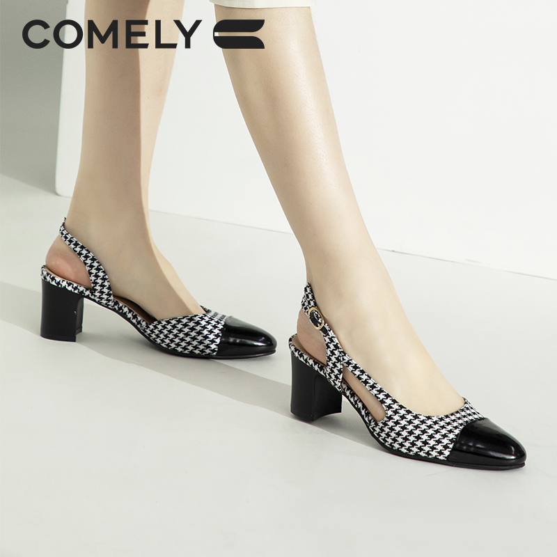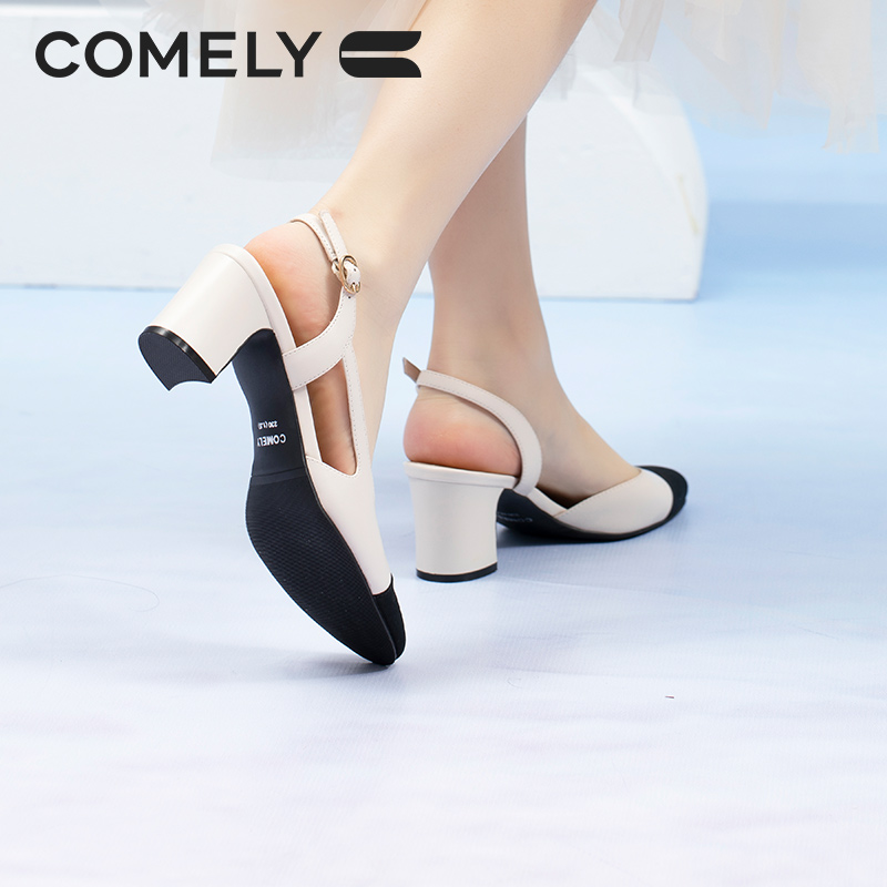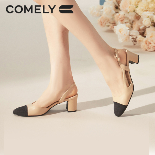 高跟鞋 康莉comely小香风包头凉鞋 单鞋 粗跟法式 女真皮春夏新款