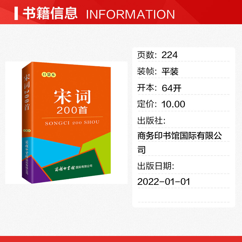 编 商务国际辞书编辑部 中国古诗词文学 新华书店正版 商务印书馆国际有限公司 宋词200首 图书籍 口袋本
