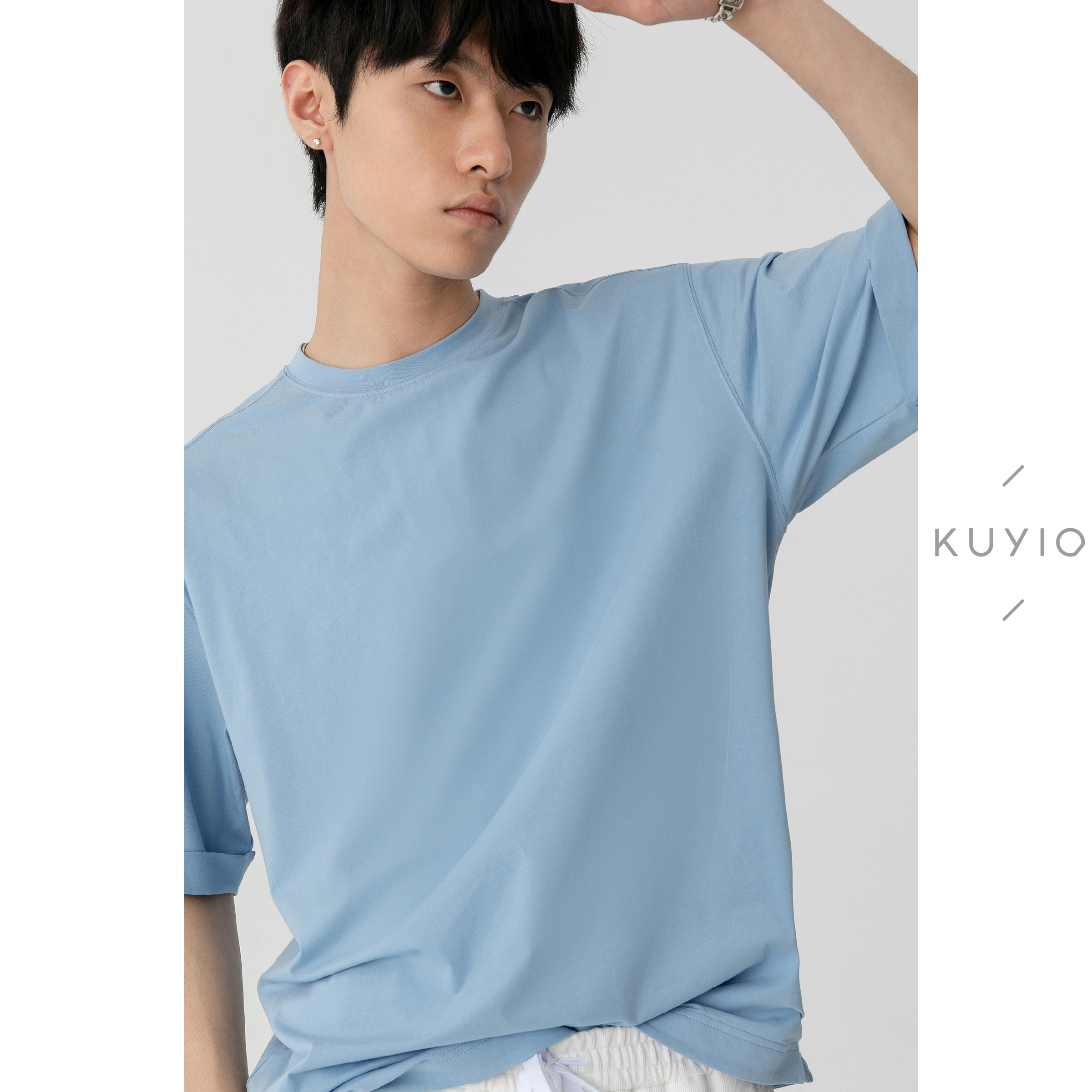 T恤男 进口GIZA埃及棉 口活页翻边落肩宽松圆领短袖 袖 T17 KUYIOU