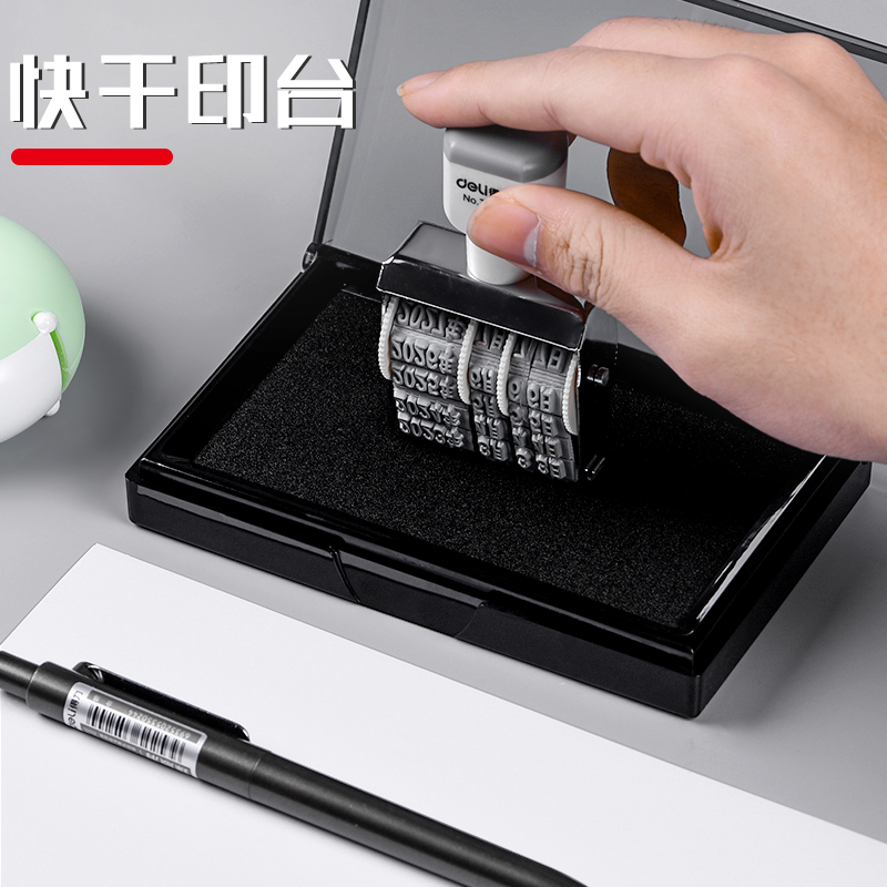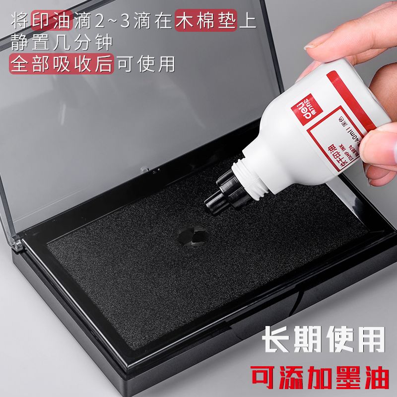 得力黑色印泥办公黑色印台长方形快干印台红色印尼盖章按手印 印泥蓝色