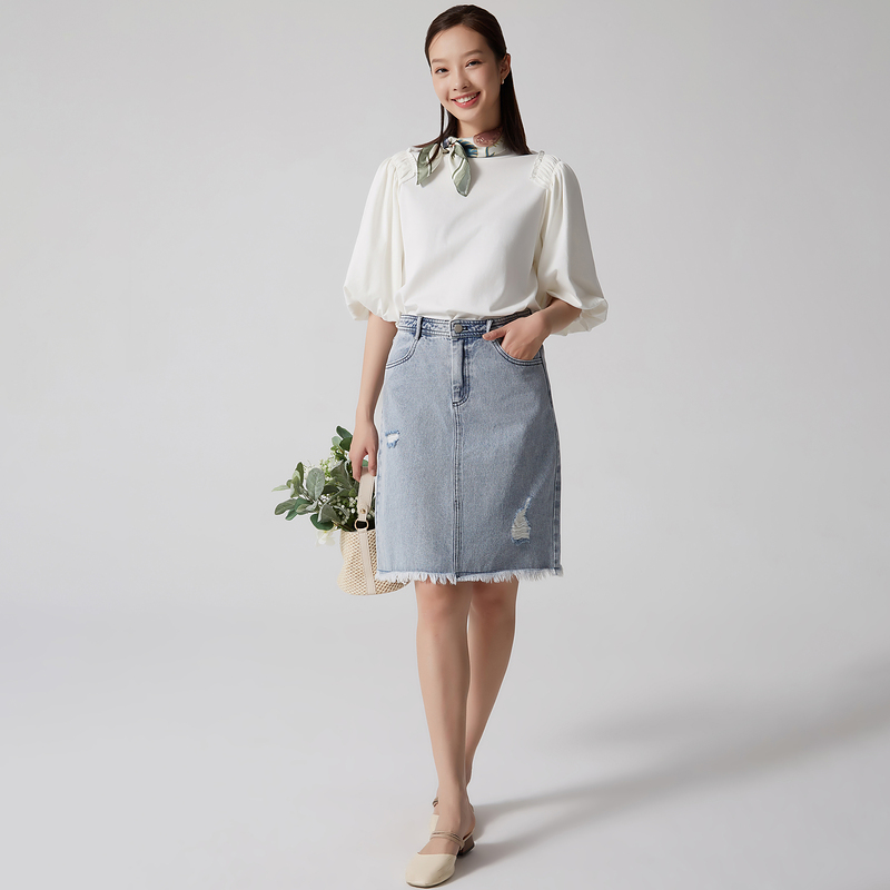 森柔牛仔 森马牛仔半身裙女开叉长裙显腿长秋盐系复古直筒裙潮酷