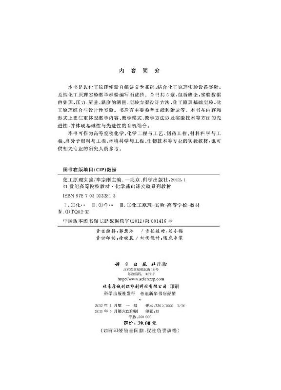 社 科学出版 9787030332813 牟宗刚 化工原理实验