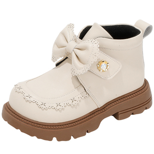 儿童靴子 女宝宝女孩加绒二棉鞋 女童马丁靴真皮短靴2025秋冬季 新款