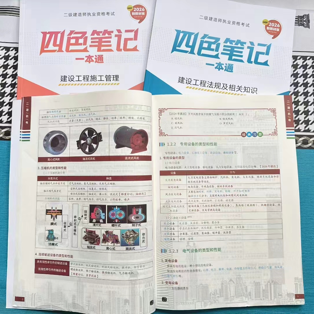 2026年二建四色笔记一本通二建建筑市政机电公路水利二建教材二级建造师四色笔记图为一本通二建讲义四色笔记二建