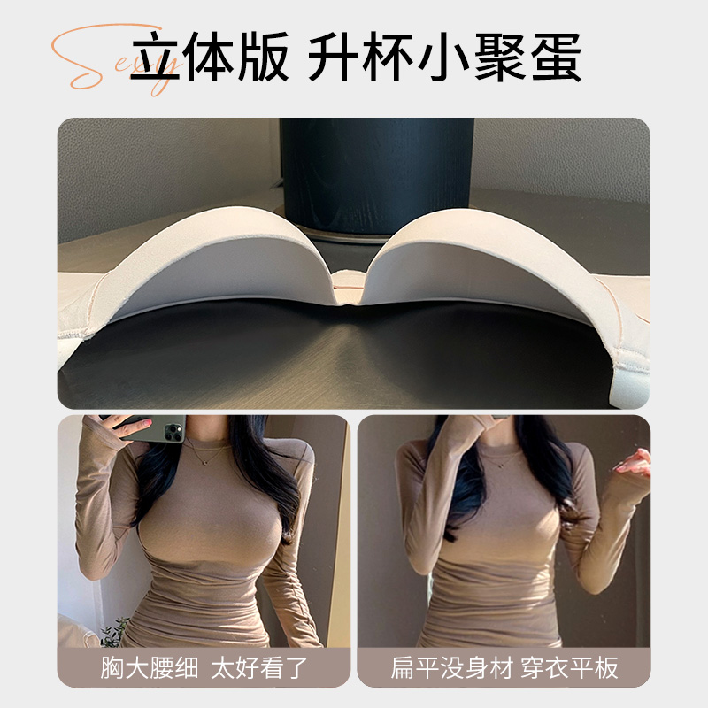 可外露美背细肩带内衣女聚拢隐形无痕一体式 背心文胸固定杯防下垂