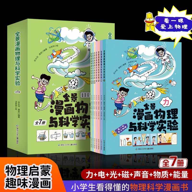 小升初课外自然科学漫画书 12岁儿童趣味物理启蒙科普知识百科全书 青少年力声音光物质电磁能量 全景漫画物理与科学实验全7册