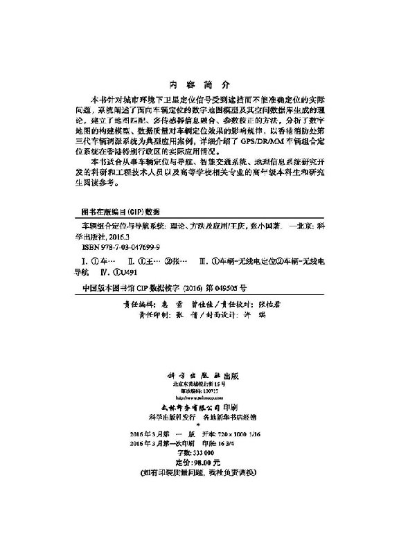 车辆组合定位与导航系统——理论 方法及应用