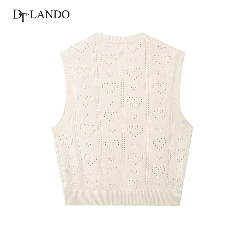 DTLANDO春季 针织背心女舒适爱心镂空洋气圆领叠穿短坎肩小马甲