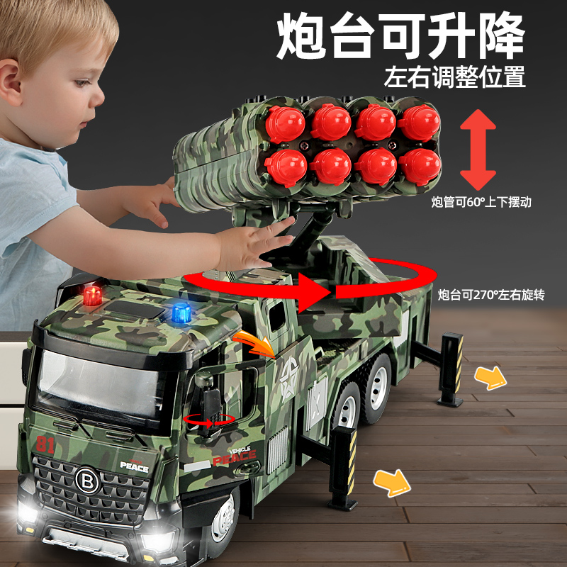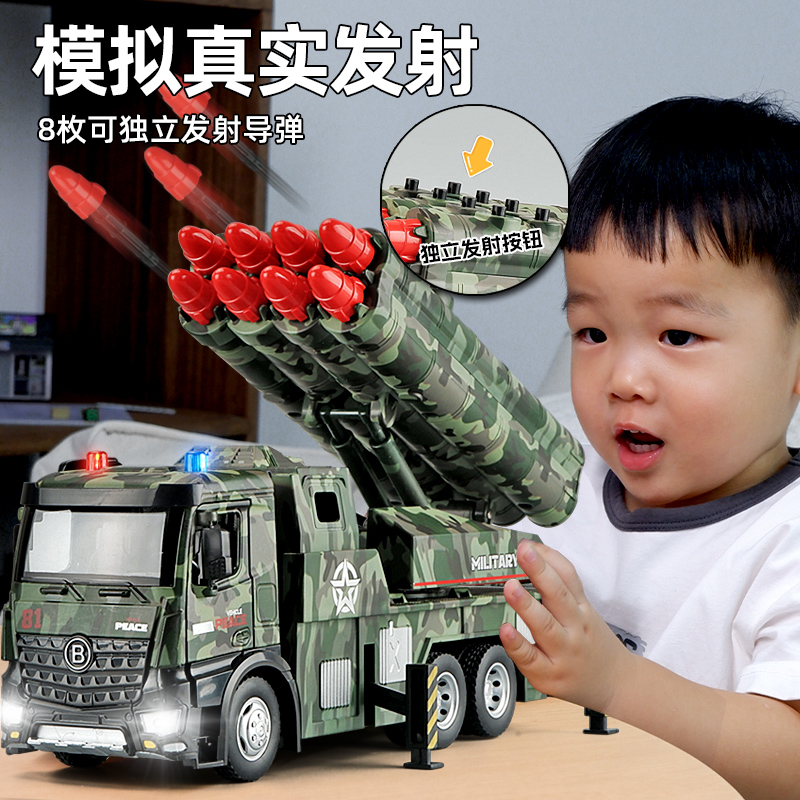 合金军事火箭炮东风导弹车儿童玩具车男孩坦克大炮发射装 甲车模型