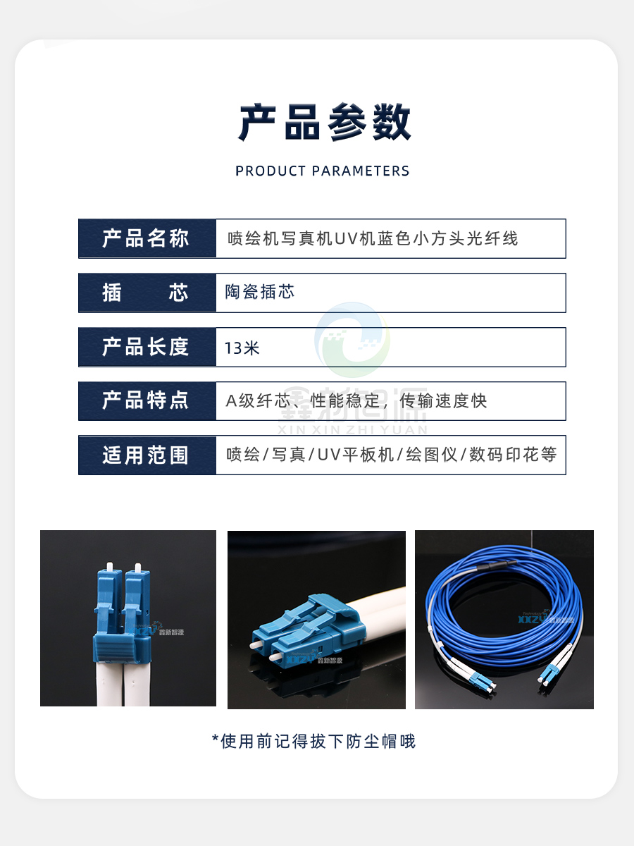 小方头13米光纤跳线UV平板机汉森板卡蓝色光纤线LC 铠装 LC单模双芯柔软耐拉光缆 喷绘机光纤线 鑫新智源配件