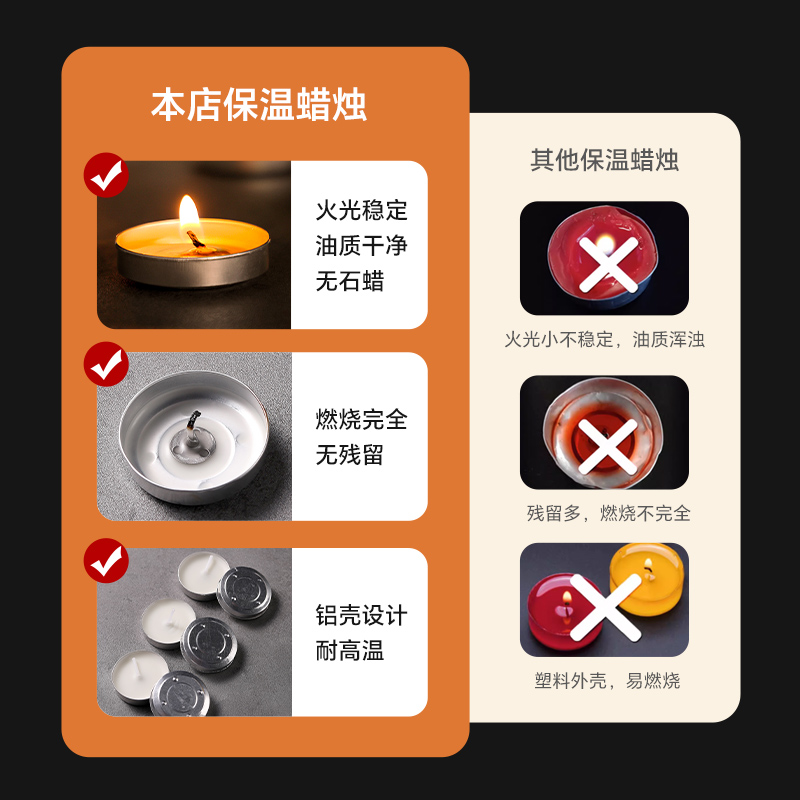 蜡烛加热炉无烟无味干锅火锅保温加热菜品小蜡烛商用酒精固体块蜡