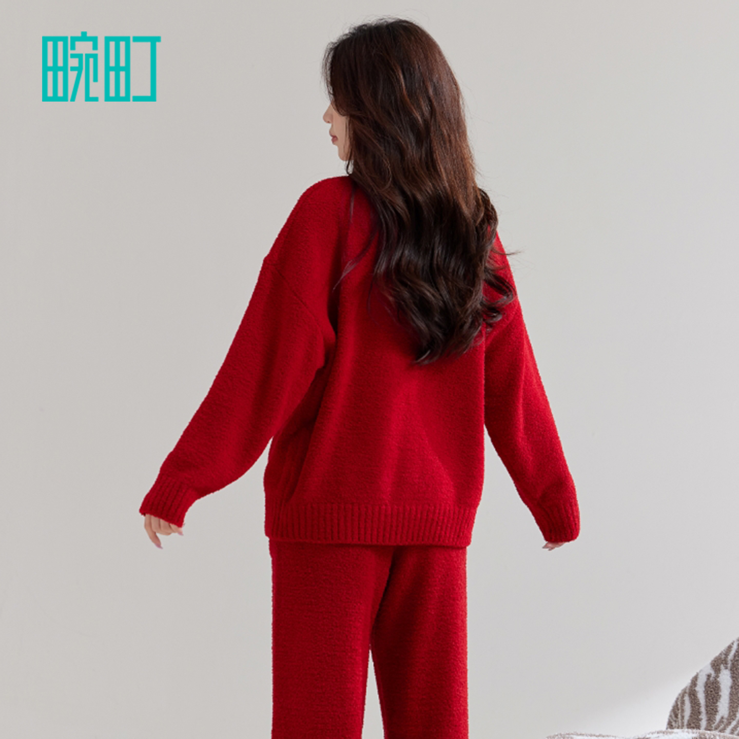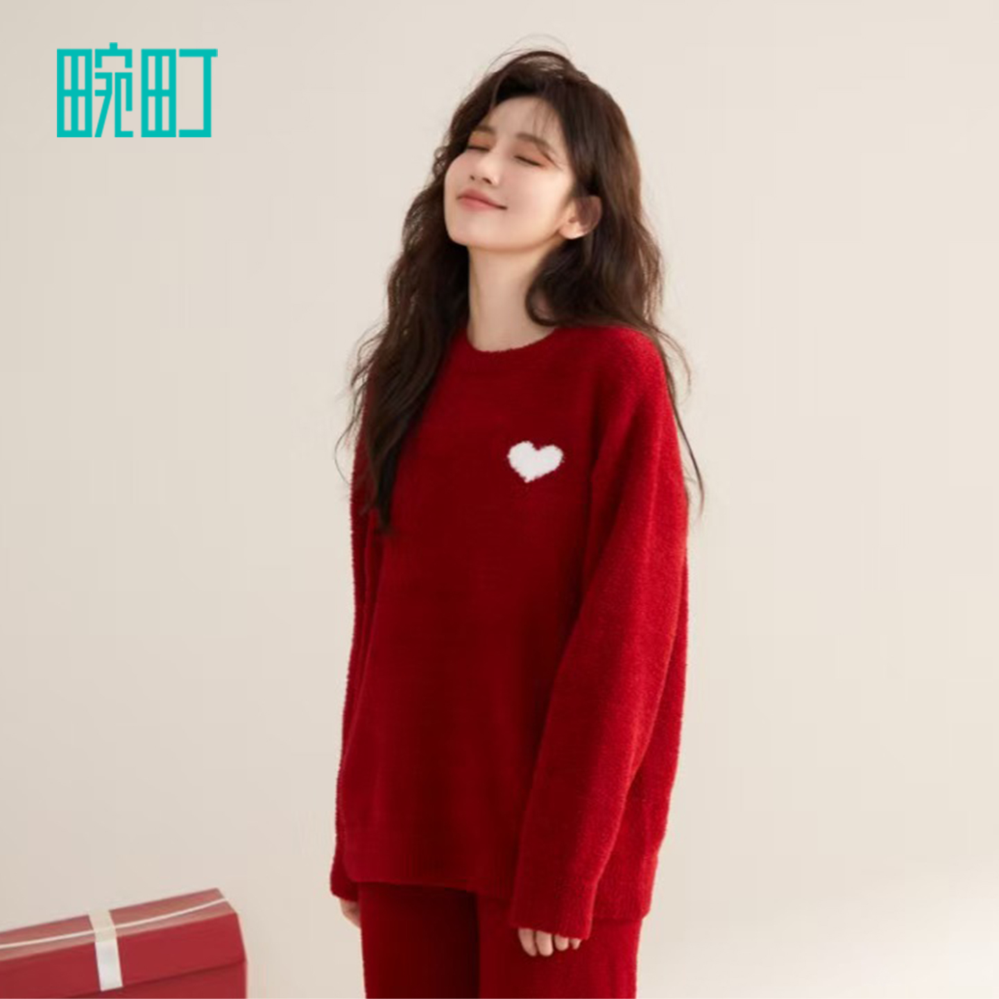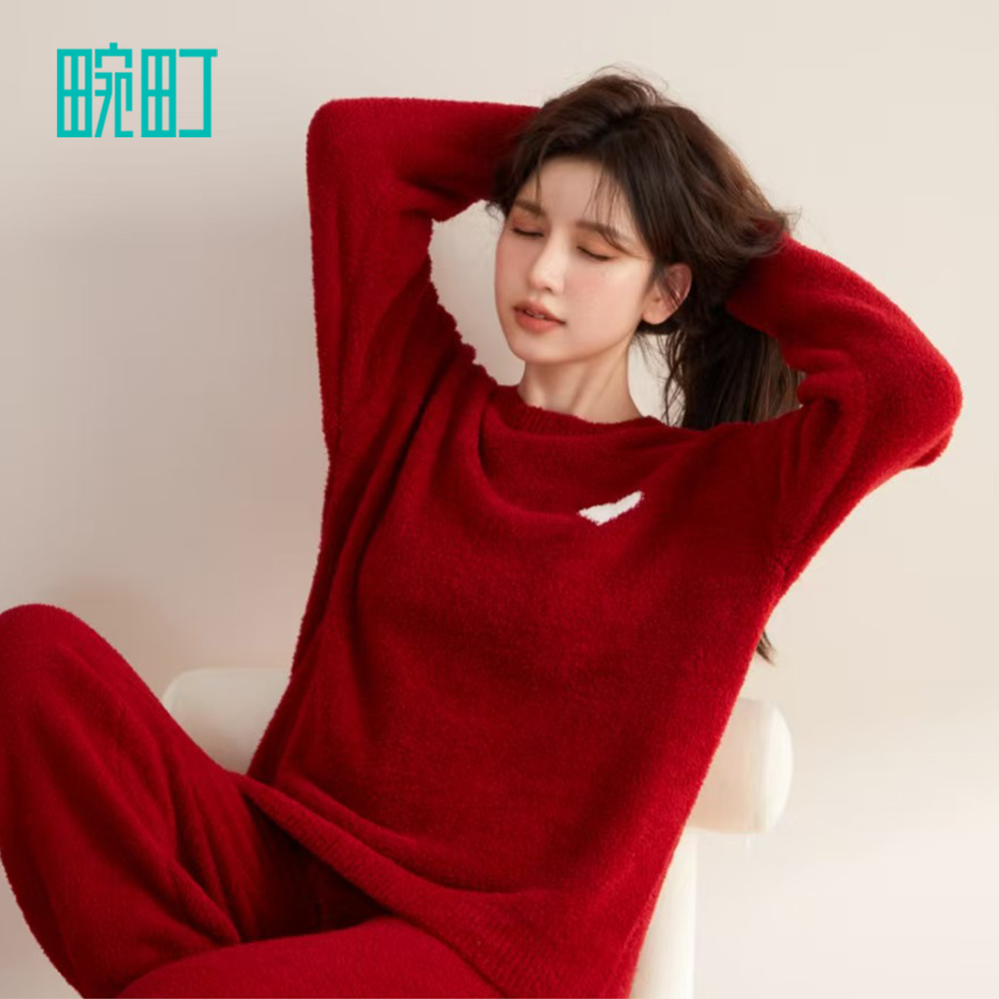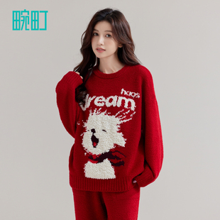 家居服套装 长裤 保暖可爱喜庆半边绒长袖 畹町新年红色睡衣女秋冬季