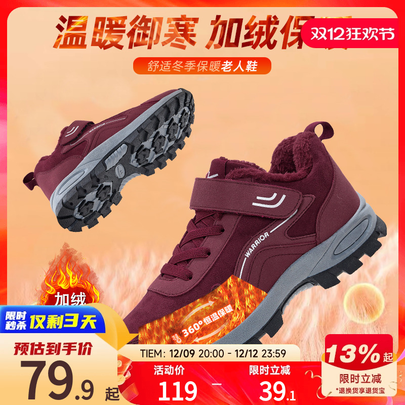 女中老年保暖鞋 回力妈妈鞋 加厚老人棉鞋 加绒女鞋 子女士雪地靴 冬季
