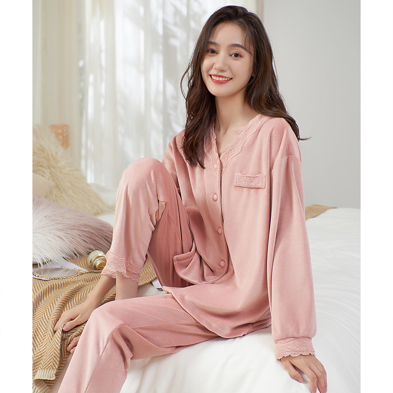 冬款 秋冬法兰绒大码 家居服 珊瑚绒加厚加绒海岛绒女款 睡衣女士冬季