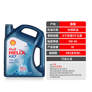 SP进口发动机保养4L Shell壳牌喜力半合成汽机油蓝壳HX7