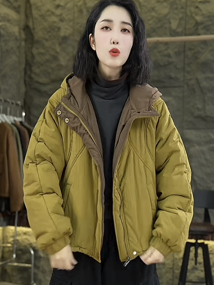 宽松休闲小个子棉袄 2025韩版 加棉加厚连帽外套女短款 棉衣秋冬新款
