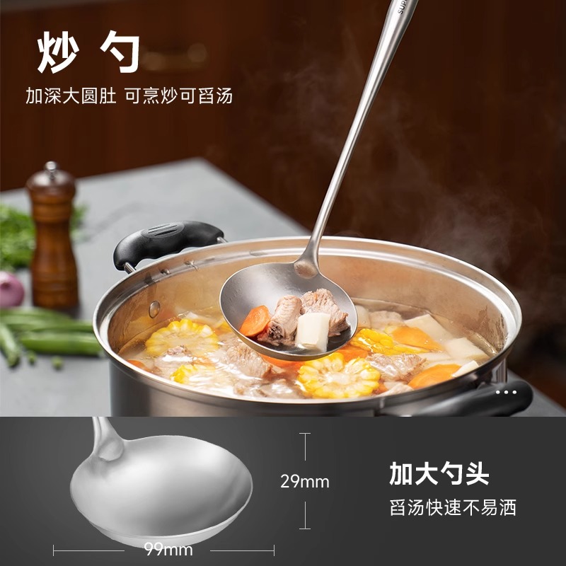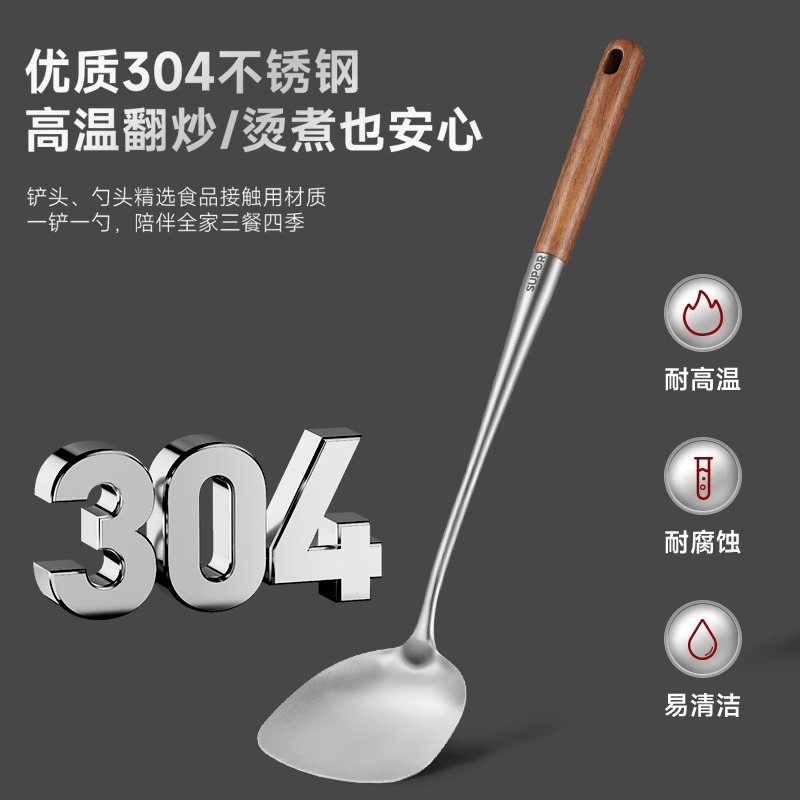 苏泊尔锅铲加厚304不锈钢炒菜铲子家用花梨木炒勺加长柄汤勺厨具