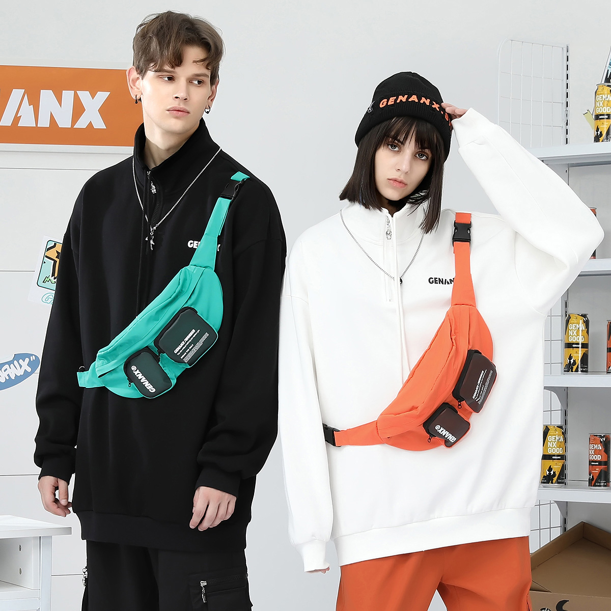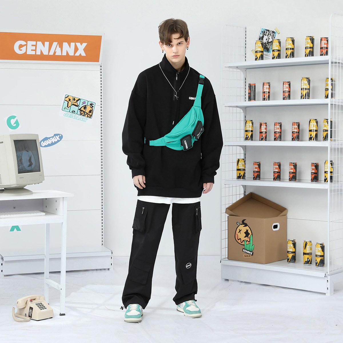 GENANX闪电潮牌半拉链卫衣情侣款 上衣 国潮可拆胸包配件中高领长袖
