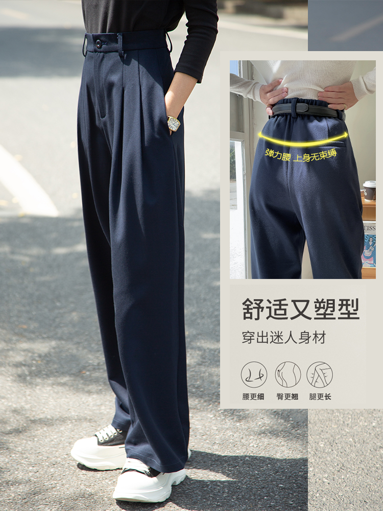 高级宽松bf慵懒垂感直筒加绒休闲阔腿裤 2025新款 子女春秋季 糯米裤