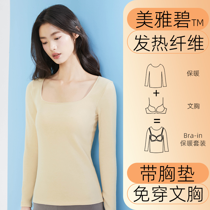 自发热薄款 带胸垫无痕冬季 打底保暖内衣 女套装 内茵美雅碧秋衣秋裤