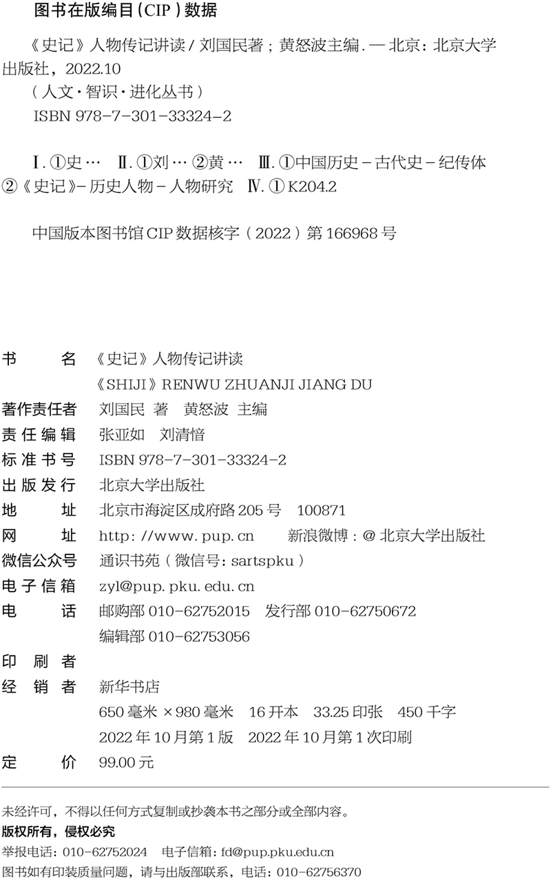 人物传记讲读 刘国民 黄怒波 正版 北京大学出版 史记 人文·智识·进化丛书 社9787301333242 2022新书