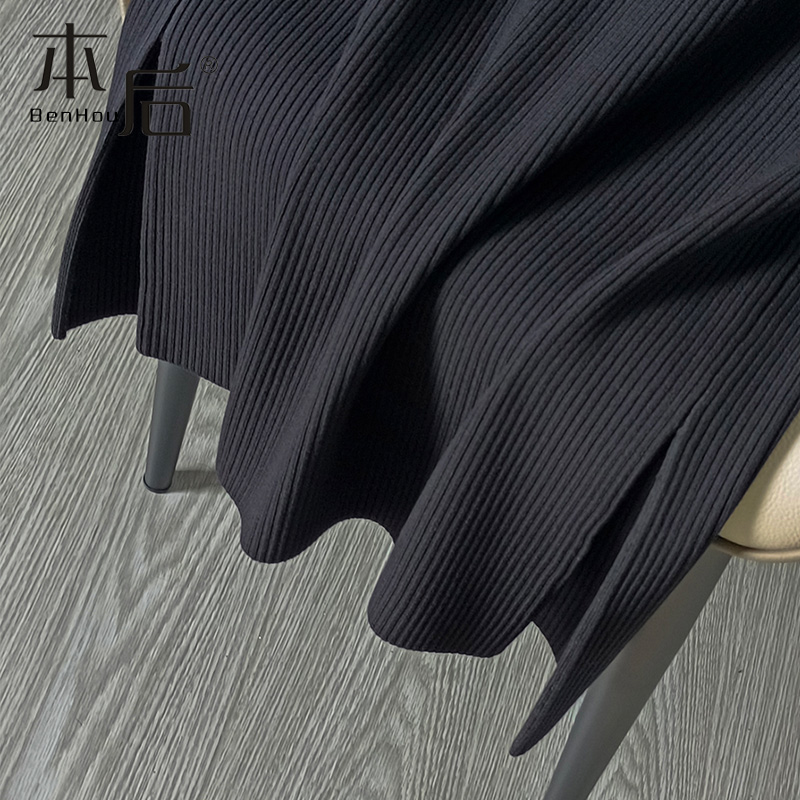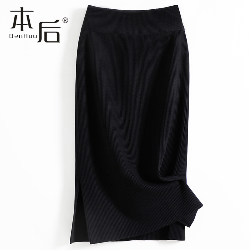 F1555D 包臀裙中裙直筒裙小个子 开叉高腰针织半身裙秋冬女中长款