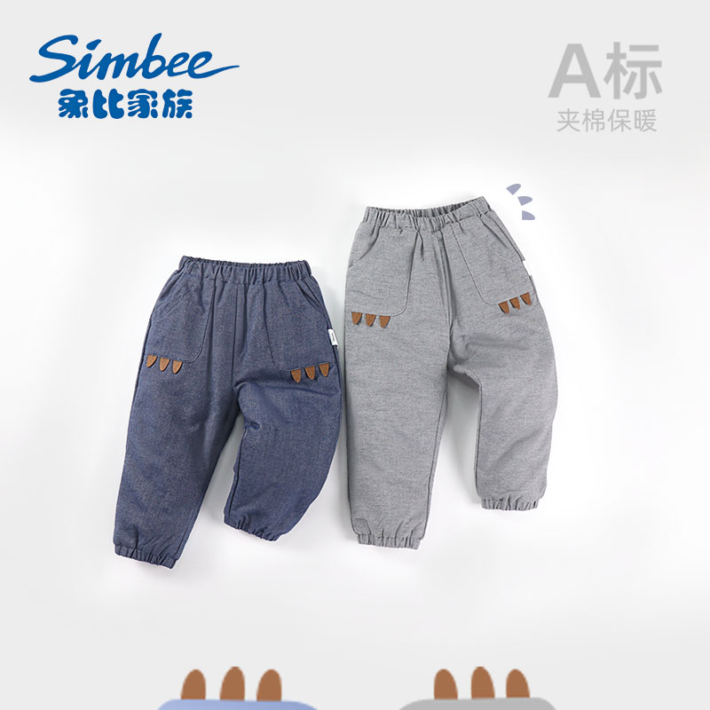 子冬装 象比家族儿童夹棉长裤 外穿保暖裤 加厚男宝宝松紧腰棉裤 冬季