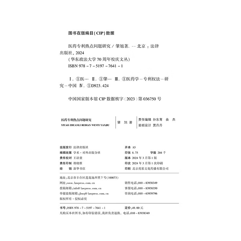 2024新书 法律出版 医药专利热点问题研究 华东政法大学70周年校庆文丛 社9787519776411 肇旭 正版
