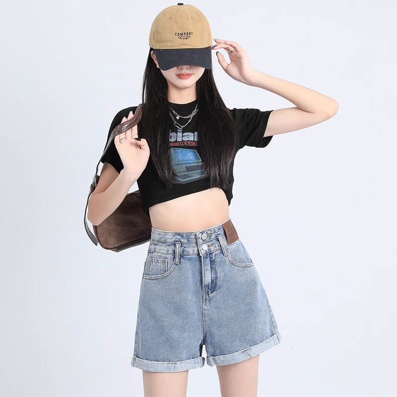拖地裤 浅蓝色高腰阔腿牛仔裤 宽松直筒小个子窄版 新款 子夏 2025春季